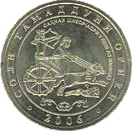 Реверс: по диаметру внешнего кольца надпись на таджикском языке: «Соли тамаддуни Ориёи» («Год Арийской цивилизации»), внизу год чеканки - 2006.