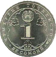 Аверс: по диаметру внешнего кольца надпись на таджикском языке: «Як сомони» («Один сомони»).