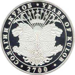Монета из серебра достоинством 3 сомони, посвященная 2700-летию г. Куляба.